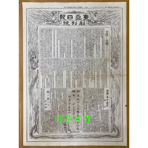 동아일보 창간호 1면 영인본