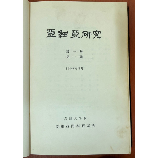 아세사연구 창간호부터 60호까지 합본호 입니다.