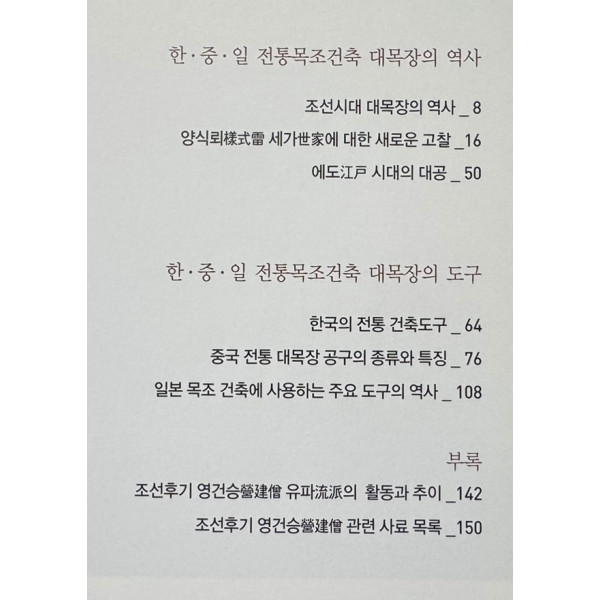 • 한중일 전통목조건축 대목장의 역사와 도구 / 수원화성박물관 / 2012년 / 192페이지