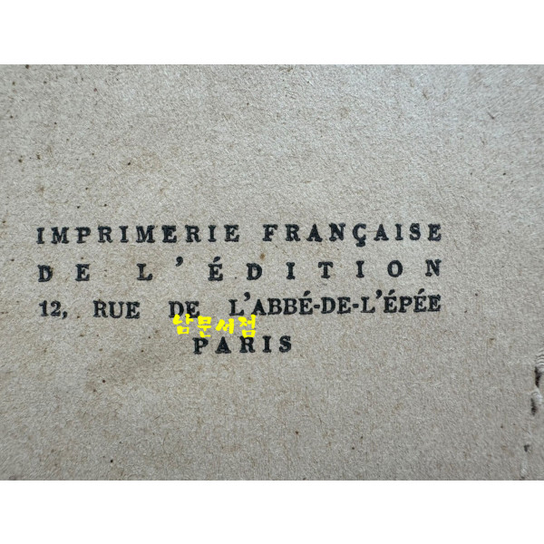 표지낙장 하드카바로 다시장정 제본상태가 삐뚤삐뚤 뒷쪽 판권은 없고 앞쪽에 1929년 이라고 되어있음 프랑스어로 되어있음