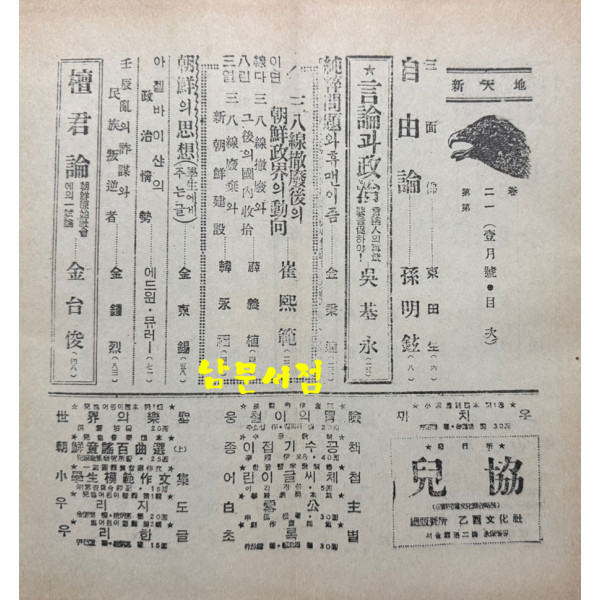 학예면 전10권 완질중 1권.10권 두 권 낙권 입니다.