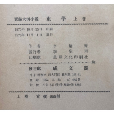 | 도서명 | 동학 상.하 전2권 완질 |