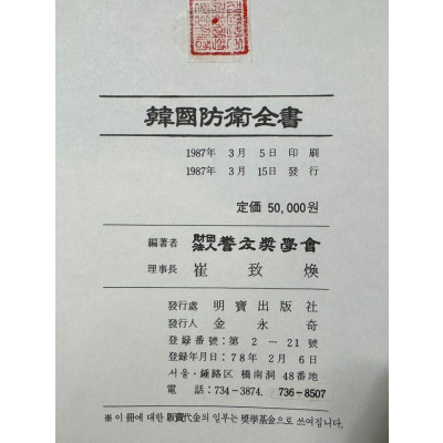 | 도서명 | 한국방위전서 / 경우장학회 / 1987년 초판 / 789페이지 |