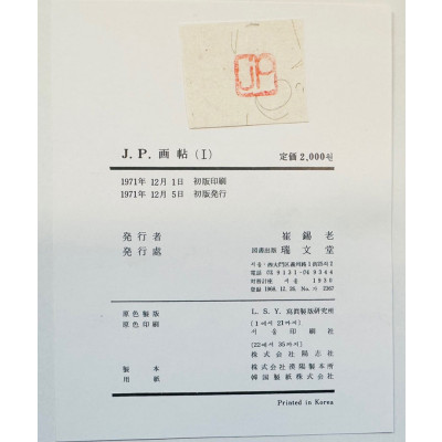 • JP화첩 1 / 김종필 / 서문당 / 1971년 초판