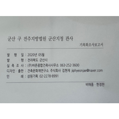 • 구 전주지방법원 군산지청 관사 기록화조사보고서 cd포함 / 군산시 / 2020년 / 298페이지