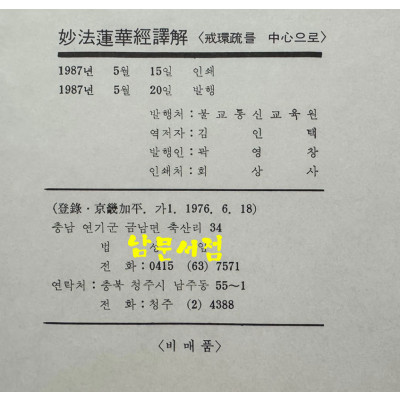 • 묘법연화경역해 - 계환소를 중심으로 / 김인역 / 불교통신교육원 / 1987년 초판 / 642페이지