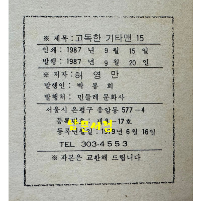 만화 특성상 반품 절대 안됩니다.